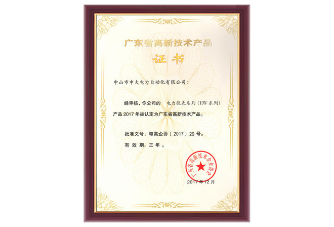EW系列高新技術產品證書